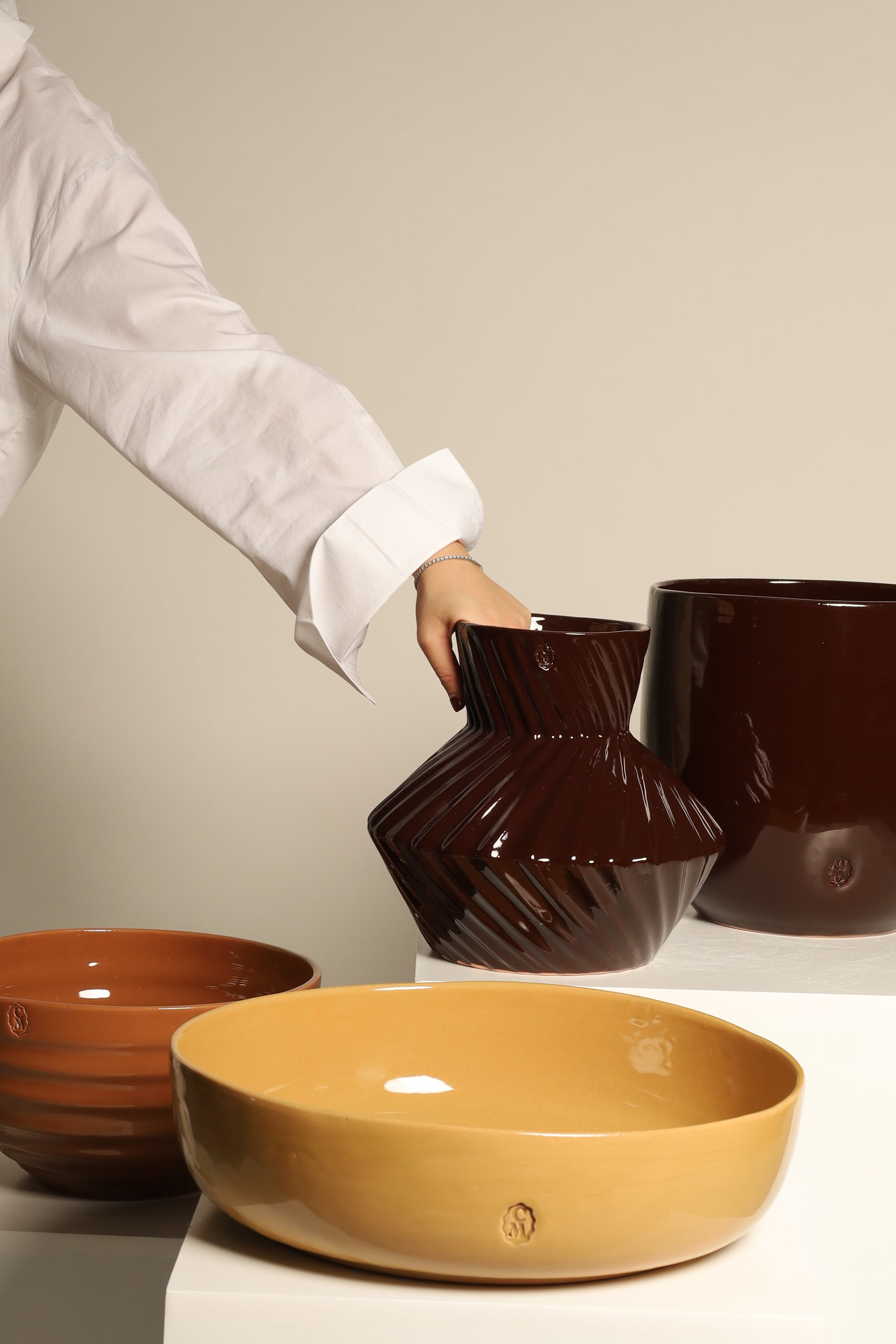 Buscamos crear piezas estéticas, cuidando cada parte de nuestro proceso: desde la preparación del material, el cuidado y la atención al detalle del alfarero y la creatividad en la elección y mezcla de cada emaltado.