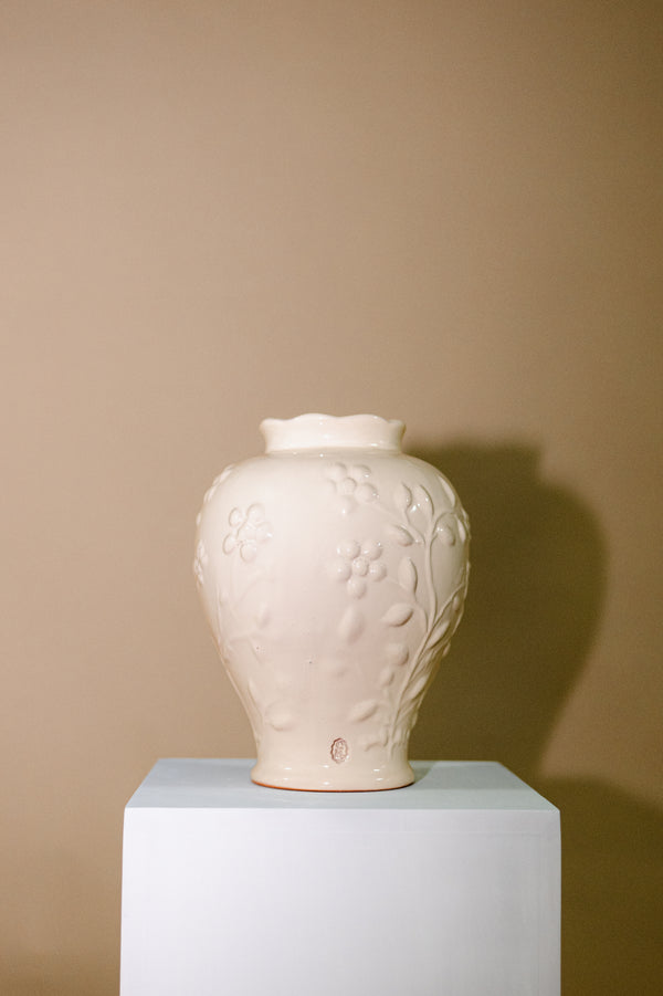 Julieta buscaba una pieza insignia: elegante, sutil y con una silueta versátil que pudiera acompañar desde flores frescas hasta arreglos sencillos del día a día.De ese proceso nació este jarrón, una pieza hecha a mano en nuestro taller, donde cada curva y proporción fue supervisada personalmente por ella.Su diseño es clasico, con líneas limpias y una presencia cálida que funciona tanto como acento decorativo como protagonista de cualquier espacio.